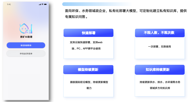 AI助理 是一款基于AI大模型、水務行業知識庫的對話小程序,具備回答水務行業專業知識的能力,本產品主要為水務領域人員提供專業知識咨詢與技術支持、數據分析、行業分析、行業知識查詢等服務。旨在解決客戶在供水、排水水務領域中遇到的工藝、運營管理、水處理原理、水質檢測、管網規劃、設備維護等問題。